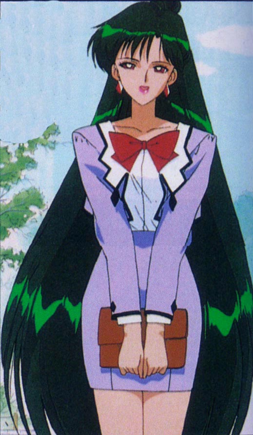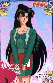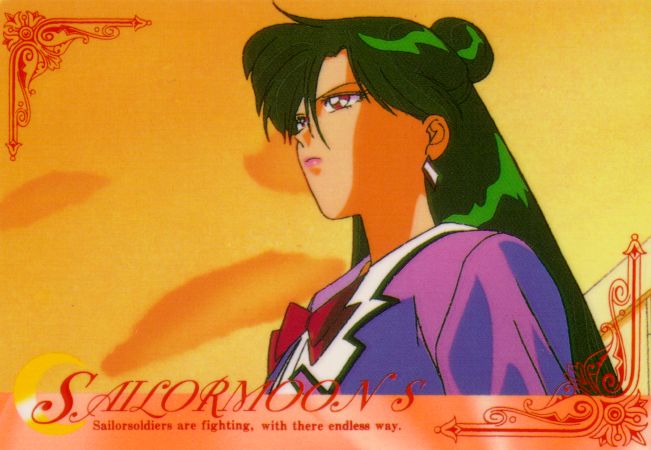 Sailor Moon S card of Setsuna dressed in green holding a portfolio